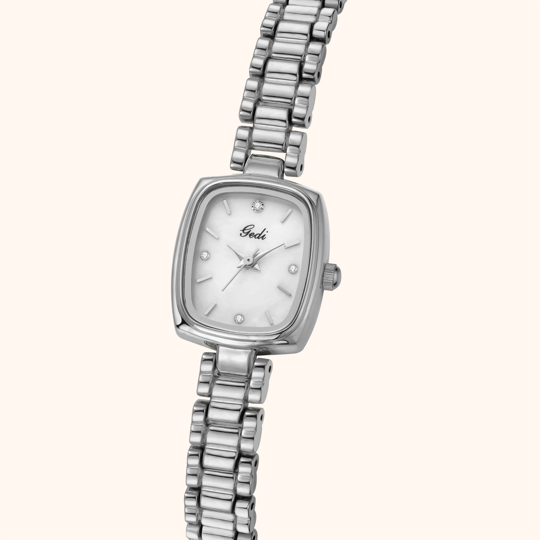 Crafted for lasting quality and classic beauty, the Elise Watch is a graceful addition to any wardrobe. With its luminous pearl white dial and polished silver-tone stainless steel, it delivers refined style for every moment.